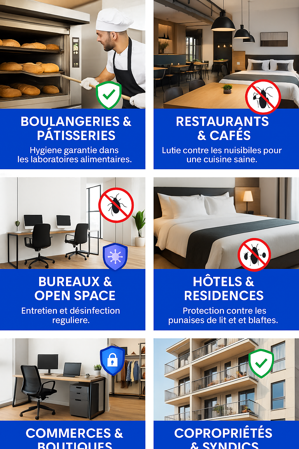 Rapports d’intervention détaillés, plan de prévention et accompagnement conforme aux normes sanitaires (particulièrement pour restaurants, hôtels, commerces alimentaires).